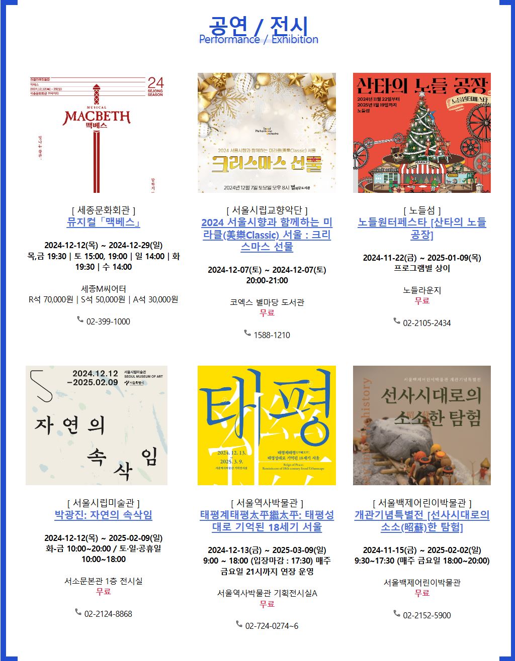 올겨울, 서울 12월 문화 달력을 통해 잊지 못할 추억을 만들어보세요.