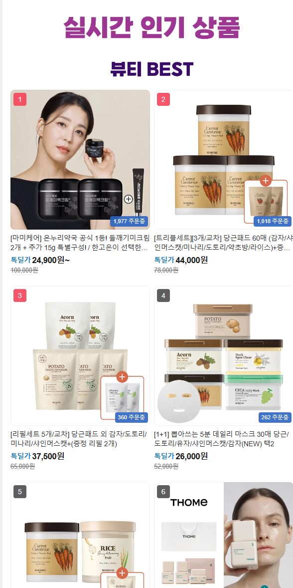여기에 더해 각 브랜드별로 특별한 이벤트와 혜택도 진행되고 있는데요. 예를 들어, 스킨푸드는 라이브 방송 중 땡큐박스 이벤트를 통해 당근, 미나리, 도토리 패드와 같은 인기 제품을 30명에게 추첨으로 증정하고, 베네피트는 틴트와 아이브로우 같은 베스트셀러 제품의 1+1 혜택을 제공한다고 하니 기대해도 좋습니다.