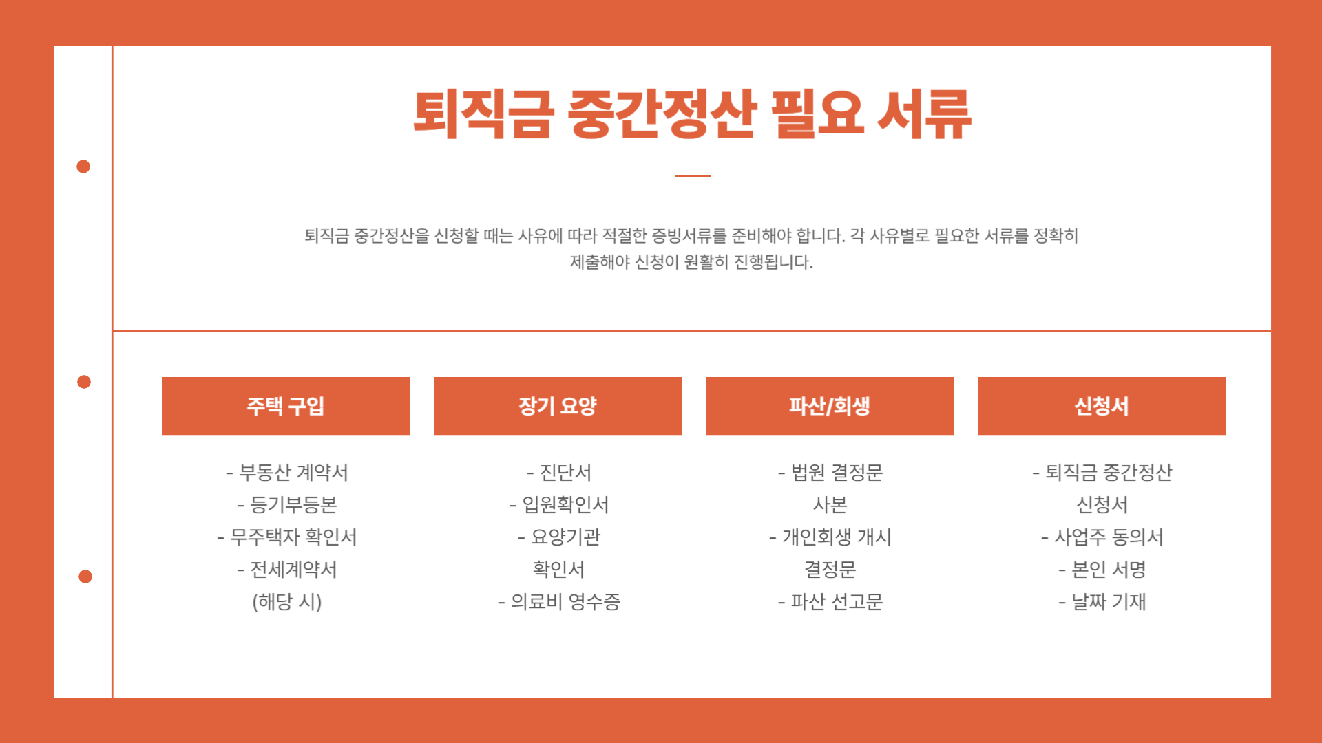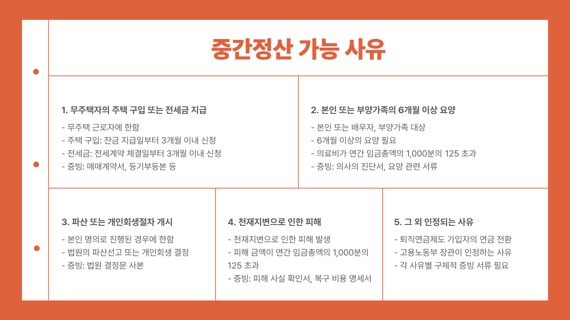 신청을 고민 중이라면 지금 바로 중간정산 가능 여부를 확인해 보세요.