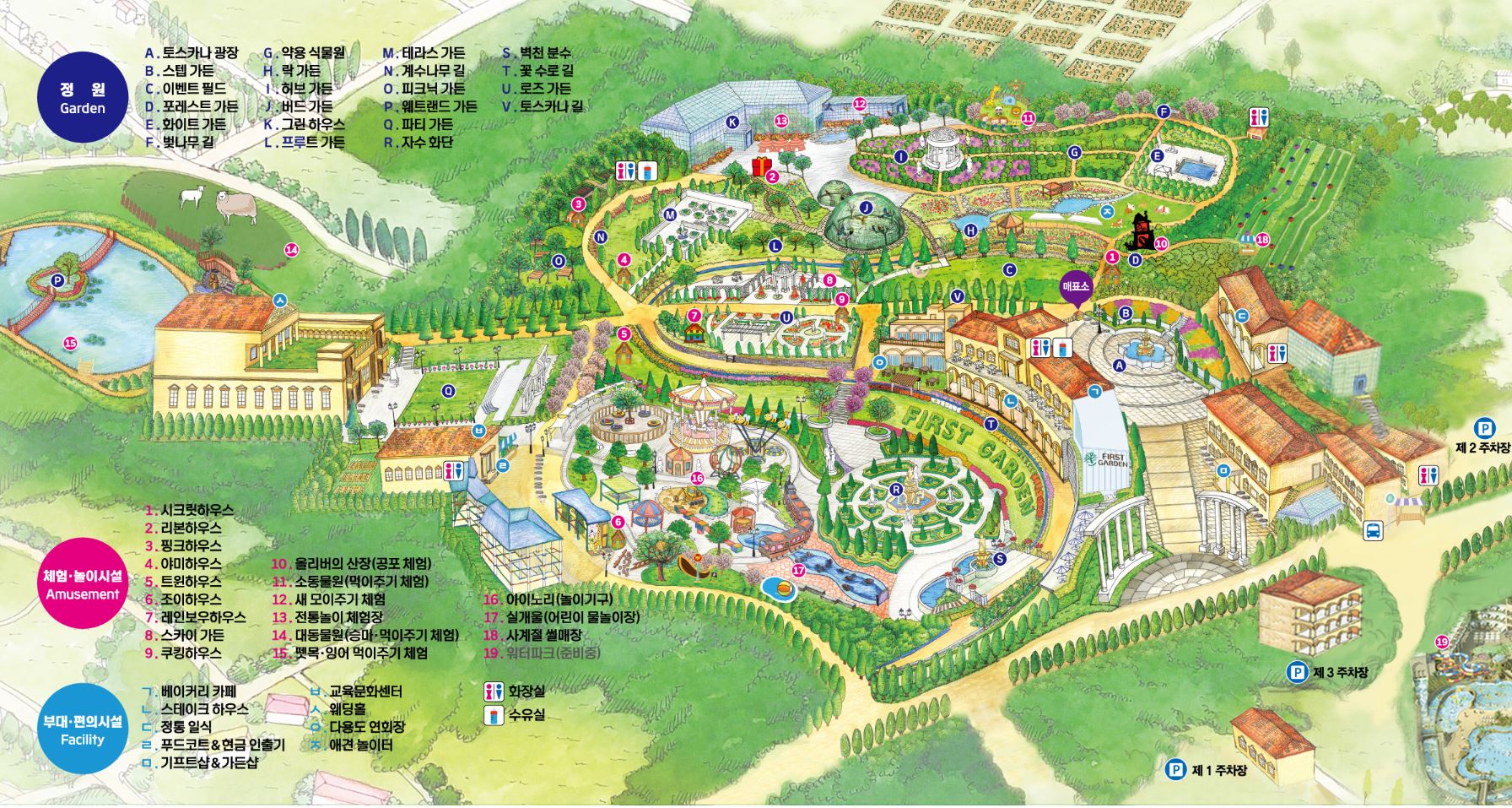 퍼스트가든에는 정원뿐만 아니라 다양한 체험 시설이 마련되어 있어 방문객들에게 풍부한 경험을 제공합니다.