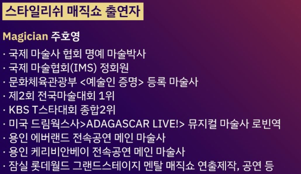 - 독창적인 연출: 최신 마술 트렌드를 반영한 스타일리쉬한 공연 연출