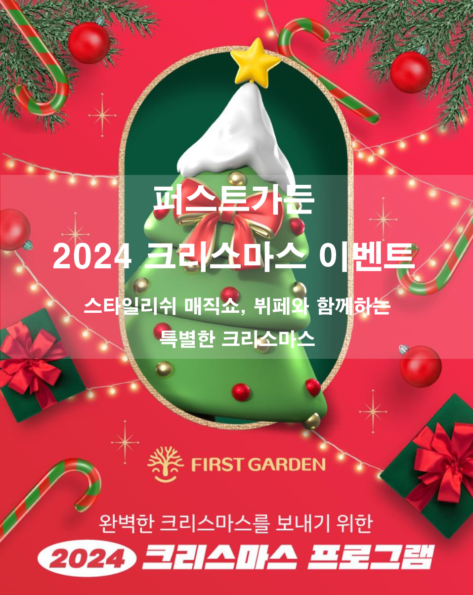 퍼스트가든에서 즐기는 2024 크리스마스 이벤트! 스타일리쉬 매직쇼, 화려한 크리스마스 조명, 가족을 위한 뷔페와 다양한 체험 프로그램까지. 크리스마스를 특별하게 보내고 싶은 분들을 위한 모든 정보 제공. 지금 예약하세요!