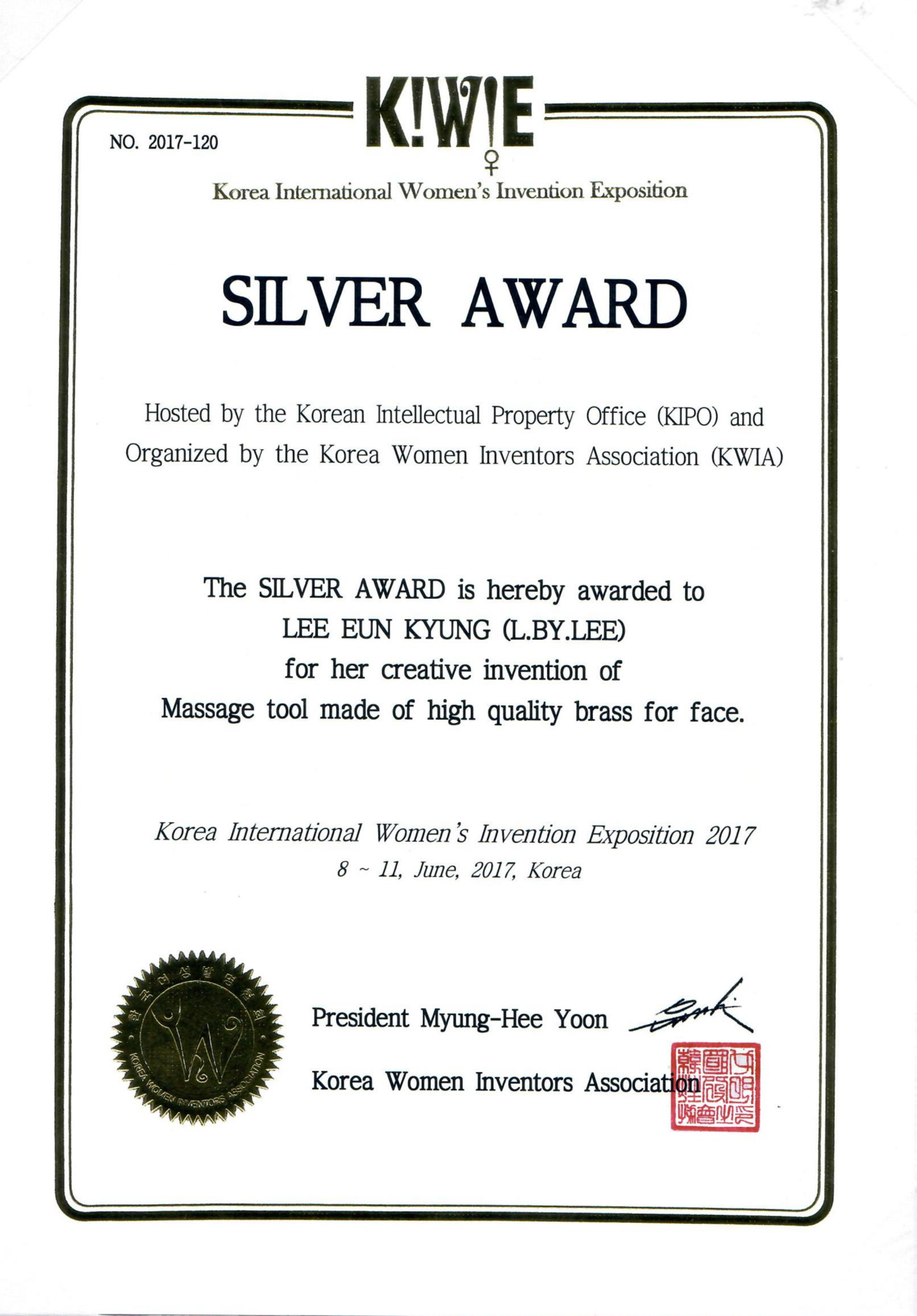 - 2017 세계여성발명대회 금상·은상 동시 수상 (서울)