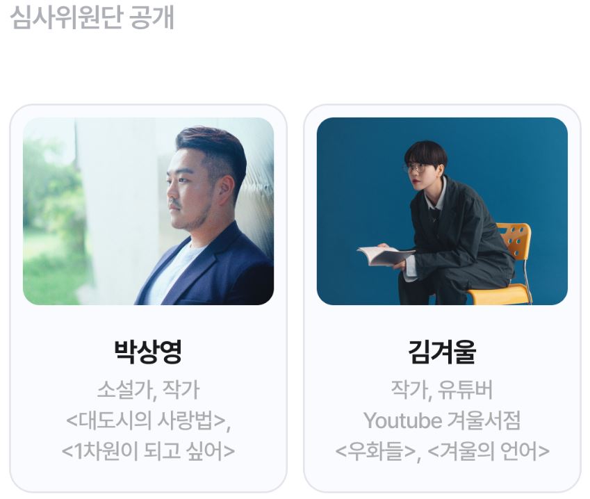 - 최종 심사에서 소설가 박상영, 유튜버 김겨울이 점수를 부여.