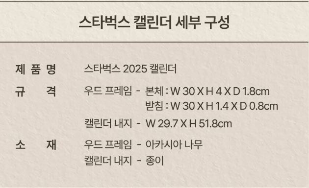 - 제품명: 스타벅스 2025 캘린더