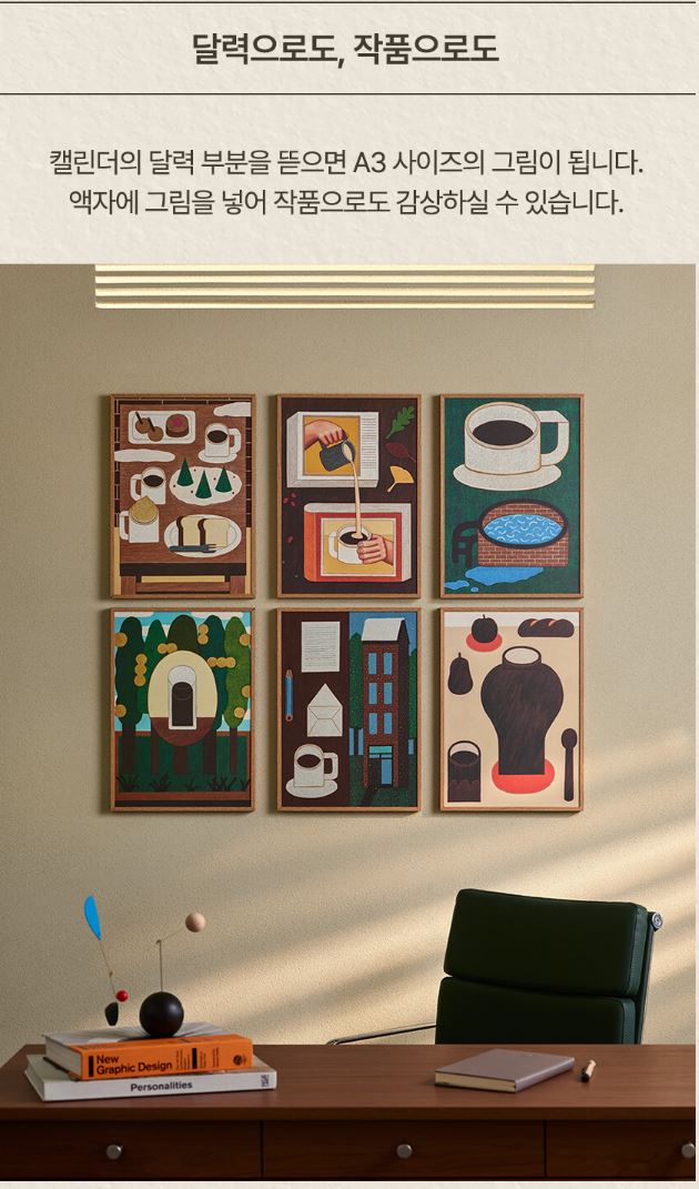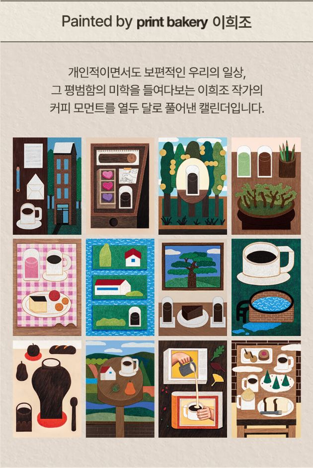 특히 이희조 작가가 커피와 일상 속 순간을 주제로 한 일러스트를 직접 그린 점이 돋보입니다. 그의 작품은 따뜻한 색감과 독창적인 구성이 특징으로, 캘린더로 사용한 후에도 액자에 넣어 벽에 걸어두면 인테리어 소품으로도 손색이 없습니다. 스타벅스 캘린더는 매달 다른 예술 작품을 즐기며 한 해를 풍성하게 보내고 싶은 분들에게 완벽한 선택입니다.
